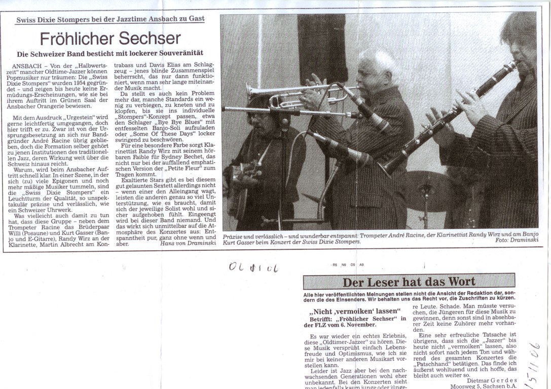 Swiss Dixie Stompers bei der Jazztime Ansbach zu Gast